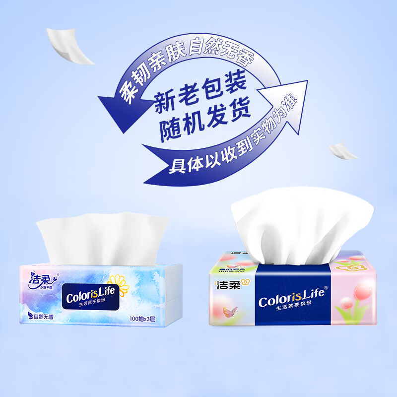 洁柔抽纸缤纷系列3层100抽纸巾面巾纸无香餐巾纸抽家用实惠装 3层 100抽*2包