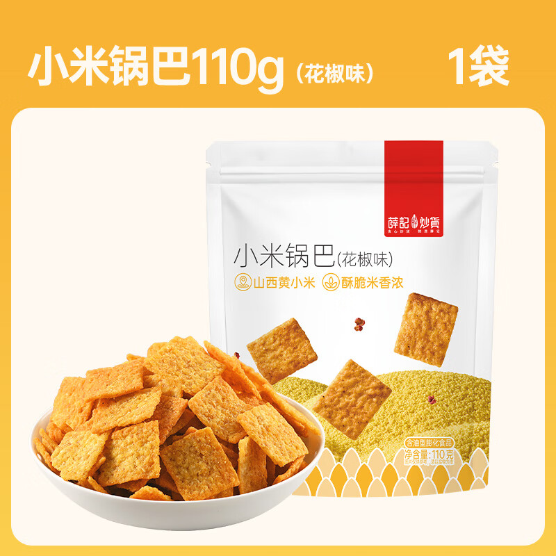 薛记炒货的花椒味小米锅巴是来自网红美食区的经典美味,这款小吃以其独特的口味、酥脆的口感赢得了消费者的青睐。花椒的独特香味完美地融合了小米的自然香气,每一口都是对味蕾的一次刺激。