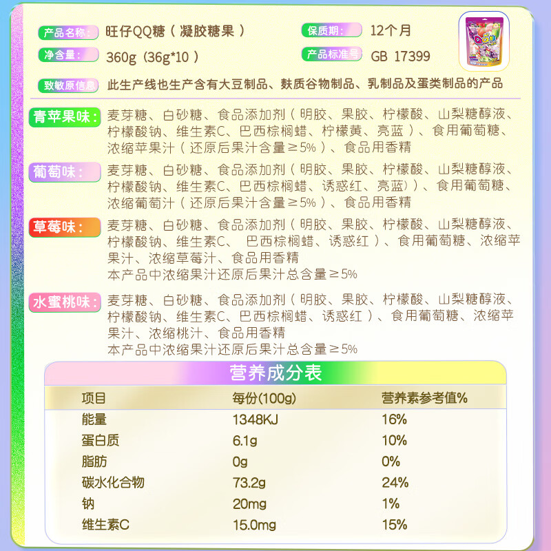 旺旺 QQ糖分享包 36g*10小包 综合口味 休闲零食 优惠价18.9元buy2026年1月6日京东优选 产品详情 旺旺QQ糖分享包,一款广受欢迎的综合口味软糖零食! 商品亮点: 多口味选择:一次满足多种口味需求,每一口都是一种享受。 营养健康:添加维生素C成分,不仅美味更注重健康与营养价值。 高品质包装:独立小包装设计,方便随身携带和分享给亲朋好友。 官方自营保证品质:点击购买即享京东自营保障及7天无理由退货服务。好评率高达99%,已有20万的好评! 现在优惠价仅18.9元,原价18.9元/包(根据购买数量或活动可能会有所调整),快来抢购吧! 产品详情 Share this content: 标签# 好物推荐# 热销产品# 食品酒水 buy 文章: 44229 上一页 文章 Luxury 925 Silver Heart Charms - Only $2.92! 下一页 文章 资生堂「夜琉璃」晚霜15ml 抗初老紧致黑绷带乳液抗老滋润体验装 仅售78元