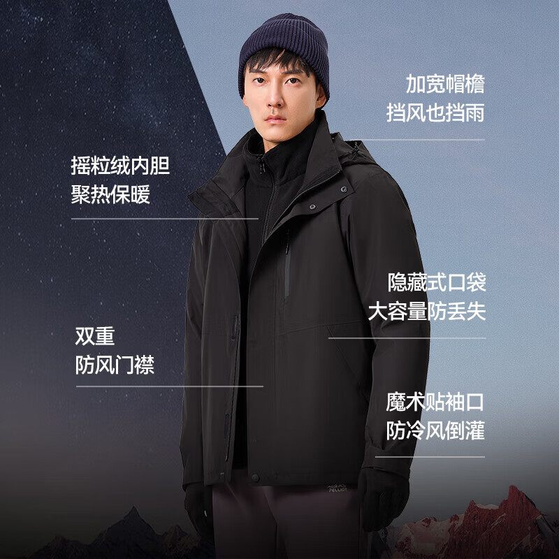 - 三合一设计:可拆卸抓绒内胆,适应多种温度环境。