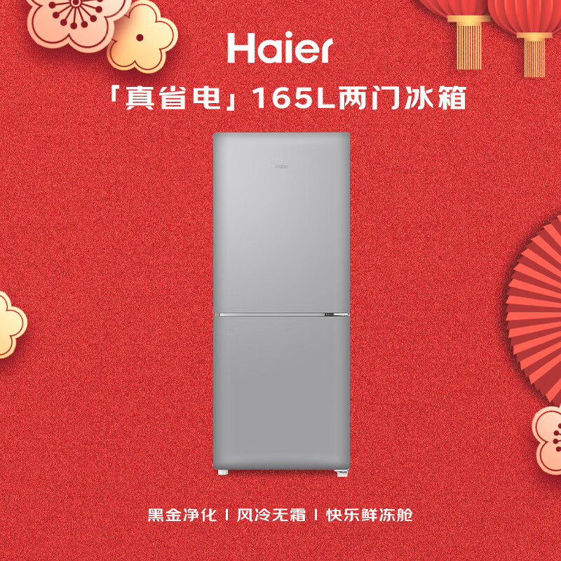 海尔「真省电」165L两门小冰箱,一级能效风冷无霜黑金净化灰,现优惠价仅需 1175 元。这款产品具备以下特性: