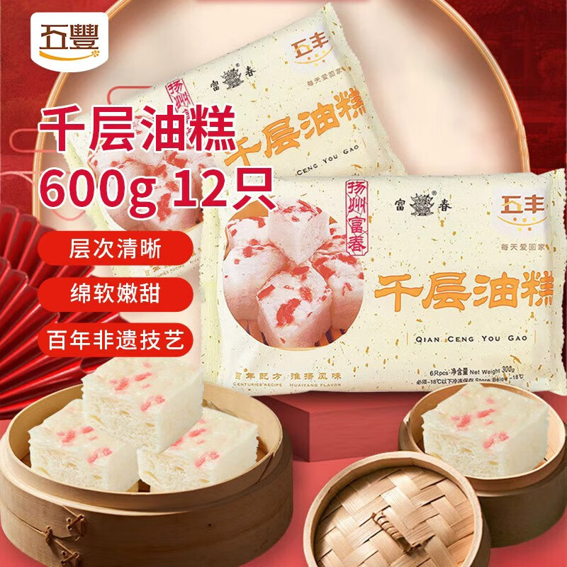 富春千层油糕300g*2 12只装 – 扬州经典美味速冻糕点,早餐首选!