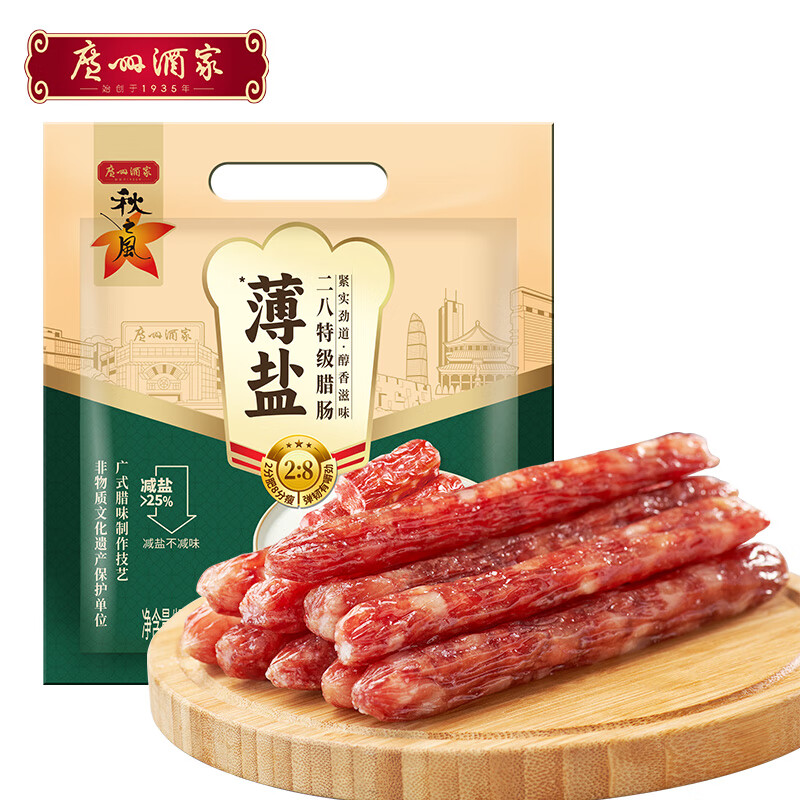 广州酒家薄盐二八特级腊肠500g – 经典美味,限时优惠价仅¥56!