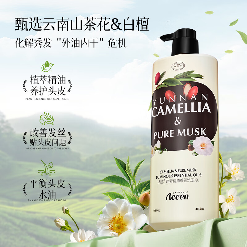 产品名称: 澳雪(accen)珍奢山茶花精油香氛洗发水 800g 控油蓬松柔顺留香