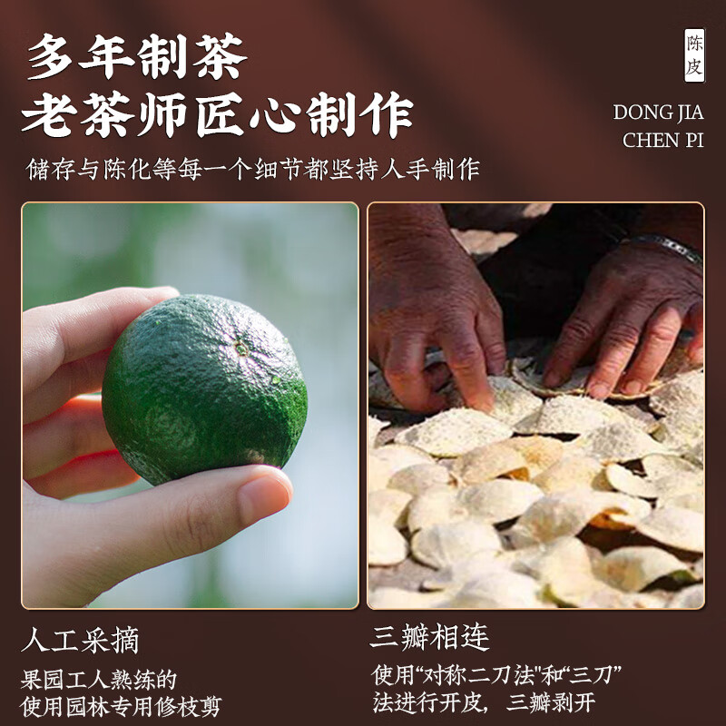 产品详情。限时优惠,65.75元即可拥有正宗茗杰茶叶十五东甲陈皮。