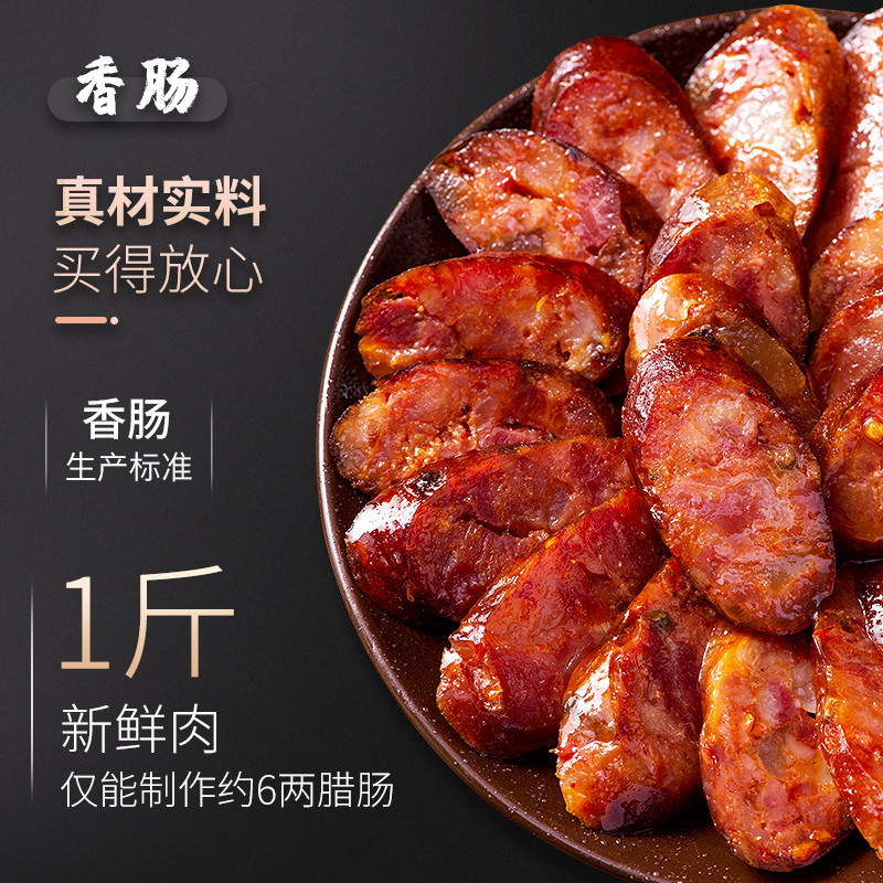 - 传统工艺:每根腊肠都由经验丰富的师傅手工腌制,经长时间烟熏而成。