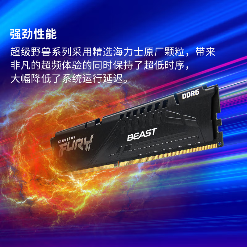 金士顿(Kingston)FURY 16GB DDR5 6000 台式机内存条 Beast 超级野兽系列 海力士颗粒 CL30 支持XMP&EXPO,现仅售 ¥1249,是目前市场上性能卓越的内存选择之一。这款产品以其高速度和高稳定性而闻名,为高端游戏、图形设计以及专业工作提供强大支持。