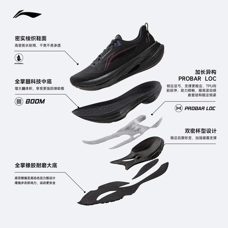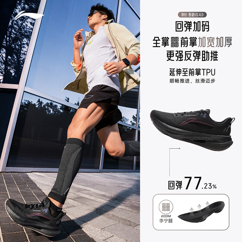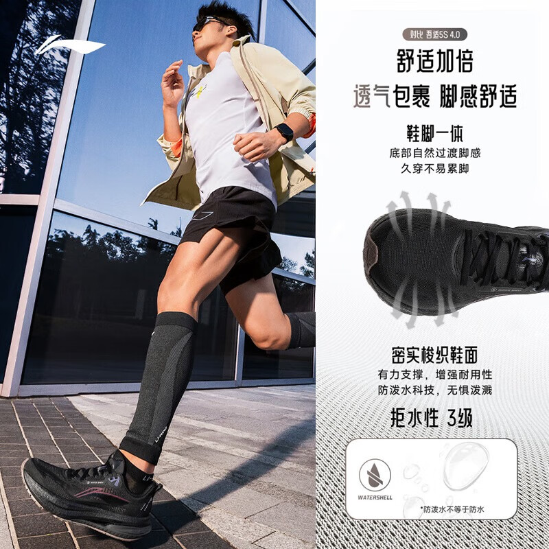 李宁吾适5S5.0减震跑步鞋 43.5 黑色-秋冬款 防护版