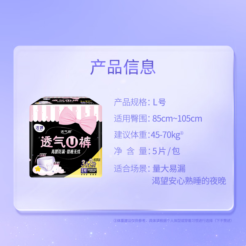 洁婷透氧U裤超熟睡安睡裤夜安裤甜睡裤拉拉裤超长夜用裤型卫生巾L码 L 5条 90-140斤 安睡裤仅售8.5元buy2026年1月10日京东优选 洁婷透氧U裤,专为夜晚使用设计的超长夜用裤型卫生巾,L码5条装,适合体重在90-140斤之间的人群。这款卫生巾采用舒适透气材质,保证整晚无束缚感。 产品详情 【产品特性】 优惠后仅需购买价格为8.5元,比原价11.5元划算更多。 具有百亿补贴、抄底大促价、同类超低价等标签,享受实惠的同时还能保证质量。 用户好评率高达99%,深受广大消费者喜爱和认可。 洁婷透氧U裤让您安心度过每一个夜晚。不要错过这个难得的机会,立即抢购吧! 产品详情 Share this content: 标签# 个护美妆# 好物推荐# 热销产品# 特价好物 buy 文章: 44145 上一页 文章 10pcs AD16-16SM Indicator Light - Compact Red Flash 下一页 文章 Headworn Microphone Loudspeaker Voice Amplifier Recorder Mic Speaker Audio Mini Wired Mikrofon Mike Sound Battery Kit Headset - Only $13.64!