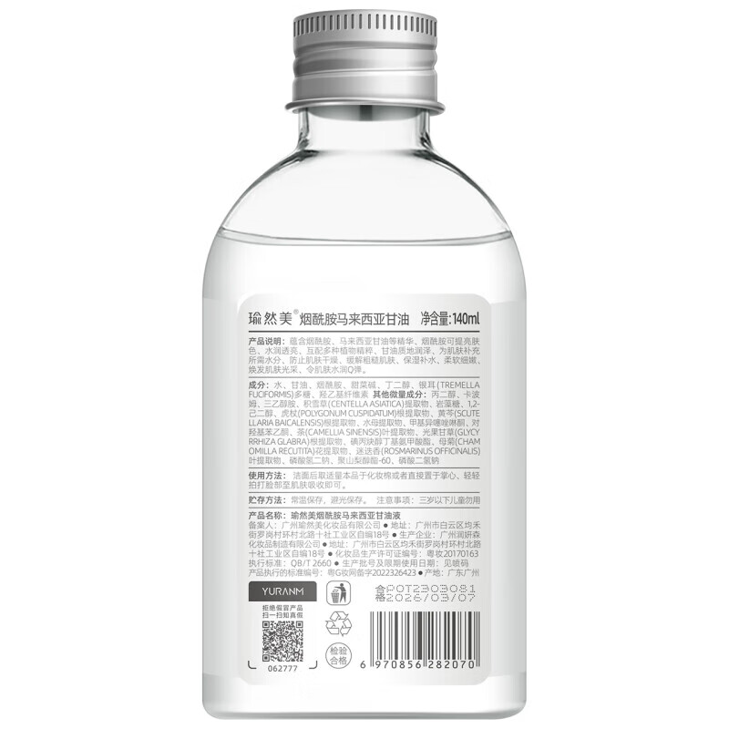 瑜然美马来西亚甘油烟酰胺护肤甘油补水滋润提亮爽肤水 新年礼物140ml*1 仅售39.9元buy2026年1月10日京东优选 产品详情 瑜然美马来西亚甘油烟酰胺护肤甘油补水滋润提亮爽肤水 新年礼物140ml,是来自马来西业的天然护肤宝藏,其核心成分为烟酰胺和保湿甘油。该产品的功效包括高效补水、滋润肌肤,并帮助提升皮肤亮度,适用于各种肌肤类型。 目前该产品正在进行限时优惠促销活动,原价高达¥39.9,现仅售 39.9元 。 此外,这款护肤产品累计获得20,000条评价,并有超过千名用户给予五星好评,好评率高达98%。其品质得到了众多用户的认可。 产品详情 Share this content: 标签# 个护美妆# 好物推荐# 热销产品 buy 文章: 44260 上一页 文章 HEALIFTY Cotton Sweatproof Anti-Scratch Finger Protector 下一页 文章 MAMBASNAKE CM05 Glass Mousepad - Elite Gaming Performance