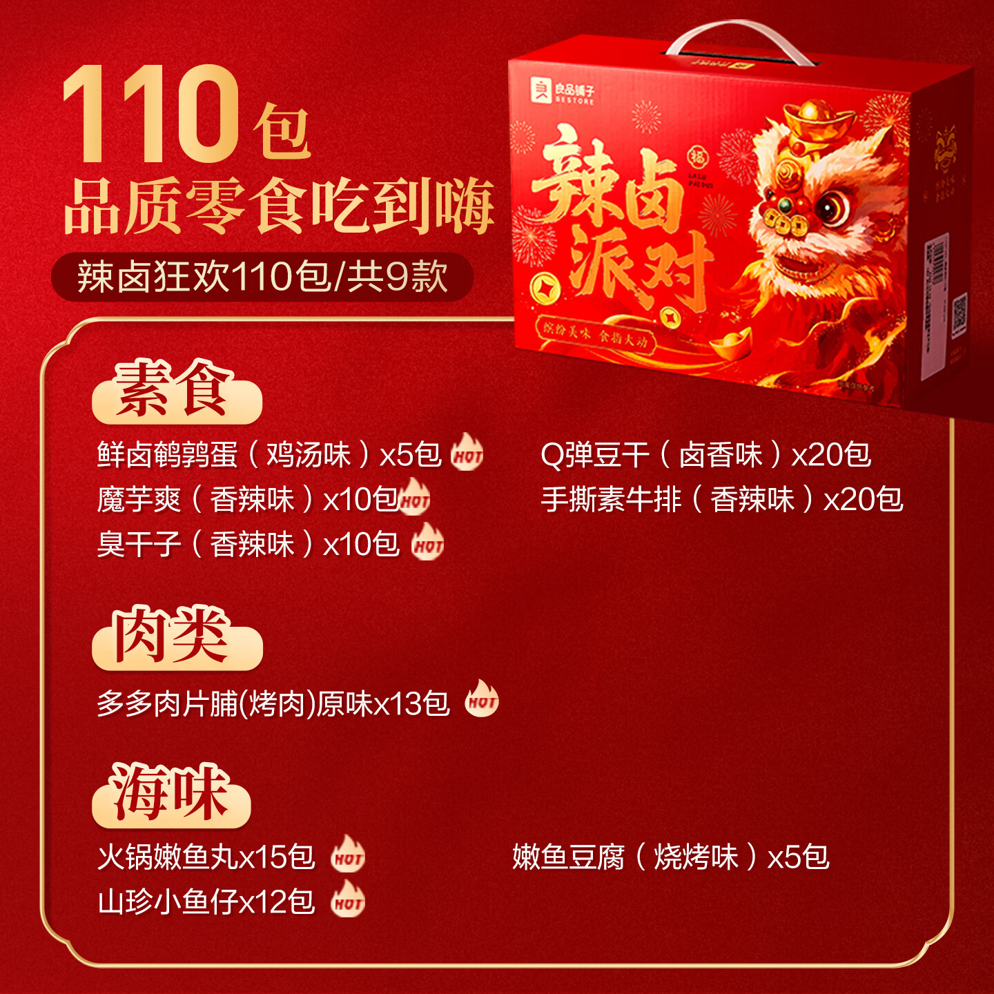 这款零食礼包集齐了众多受欢迎的口味和种类,包括辣卤派对688g x1袋等丰富选择,不仅适合自己享用,更是送礼佳品。