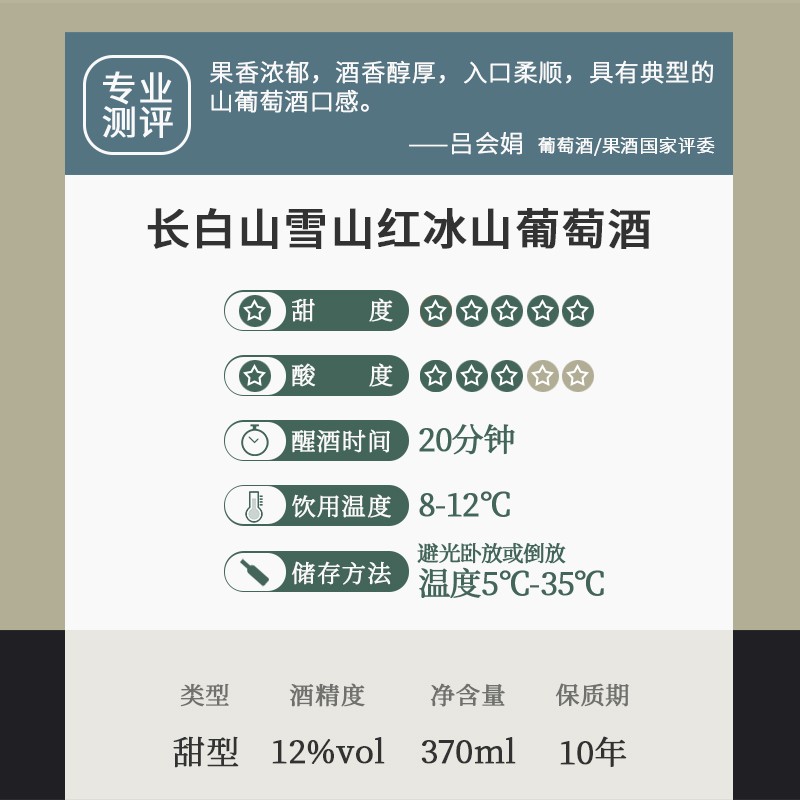 长白山 雪山红冰酒12度 是一款集美味与艺术于一身的甜型红酒。它不仅是冬季里的一道亮丽风景线,更是馈赠亲友的理想选择。