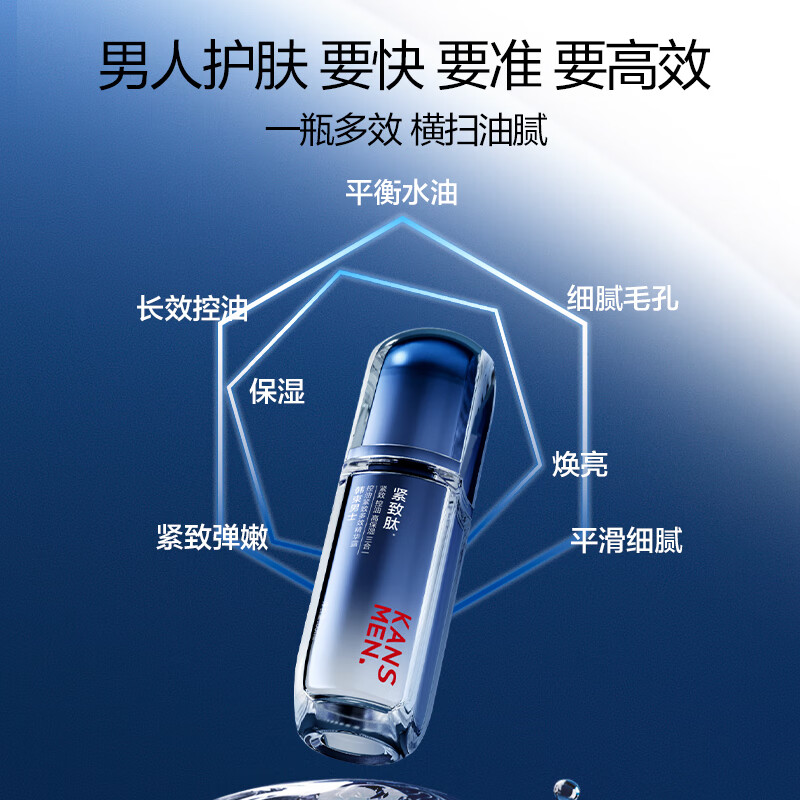 这款精华露是专为现代男士设计的控油、补水护肤必备单品,不仅能够有效控制面部油脂分泌,还能深层补充肌肤所需的水分,帮助改善因为过度清洁导致的皮肤干燥和紧绷问题。精华液质地轻盈清爽,在使用后可以快速被肌肤吸收,并且不会给皮肤带来油腻感。