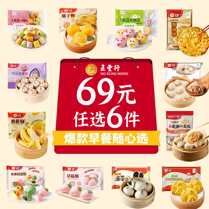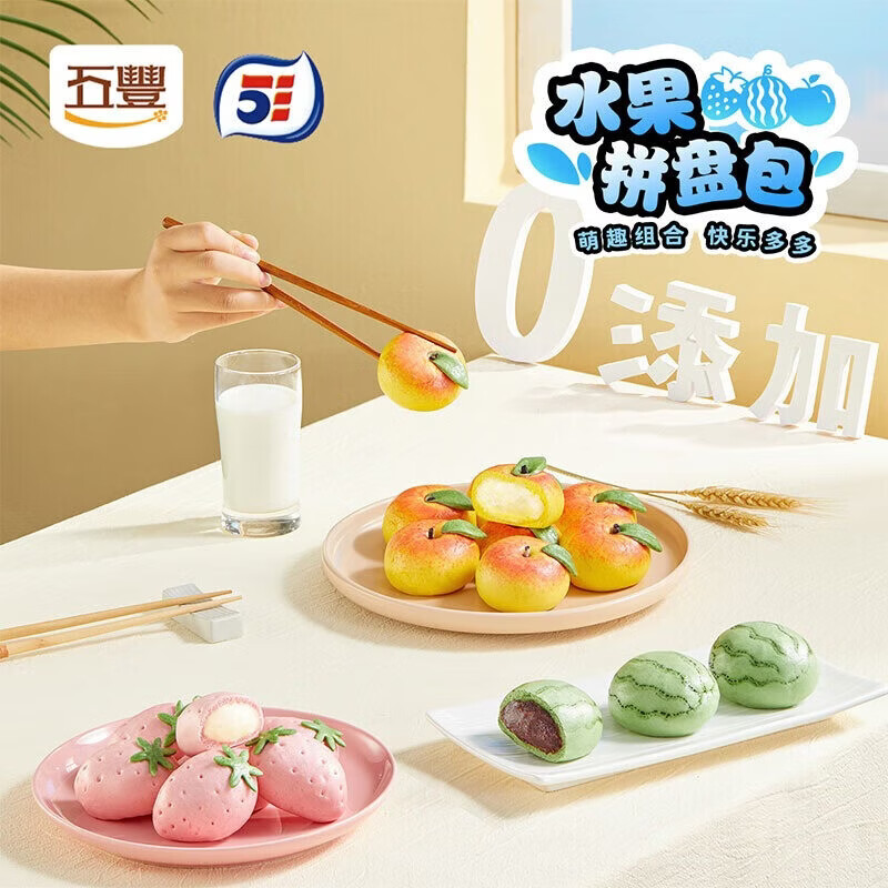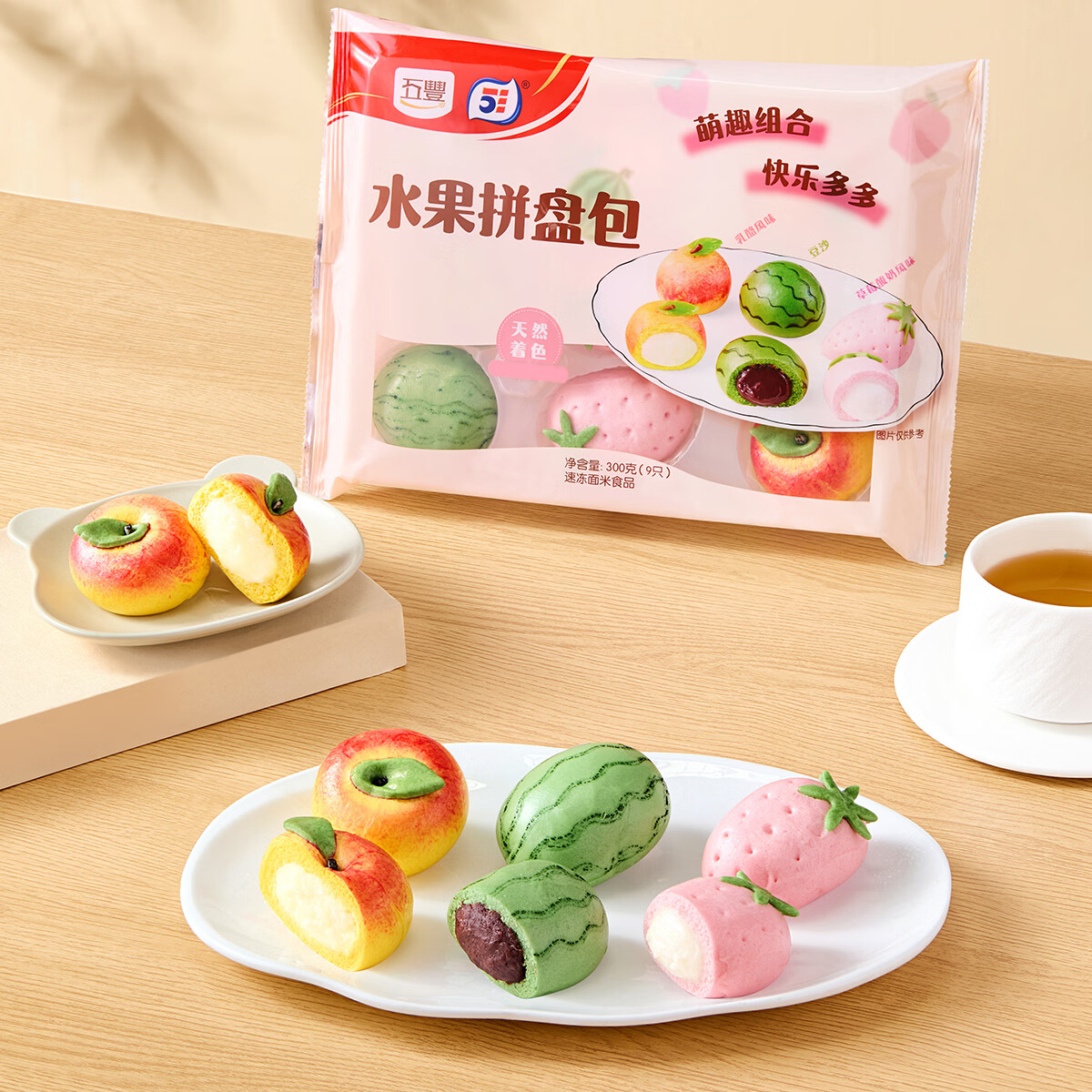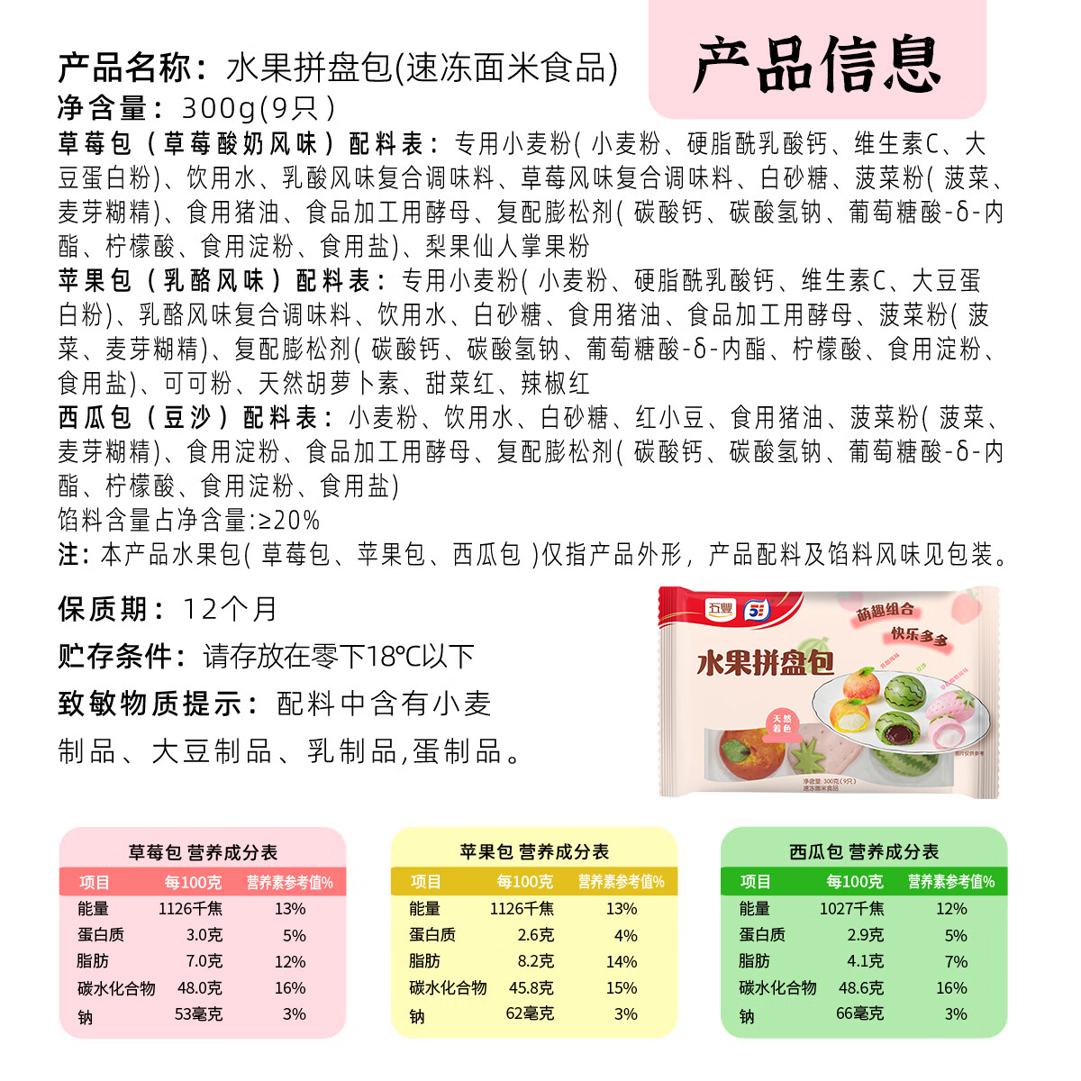 产品简介:五丰【69任选6件】水果拼盘包300g9只儿童营养早餐速食包子辅食馒头