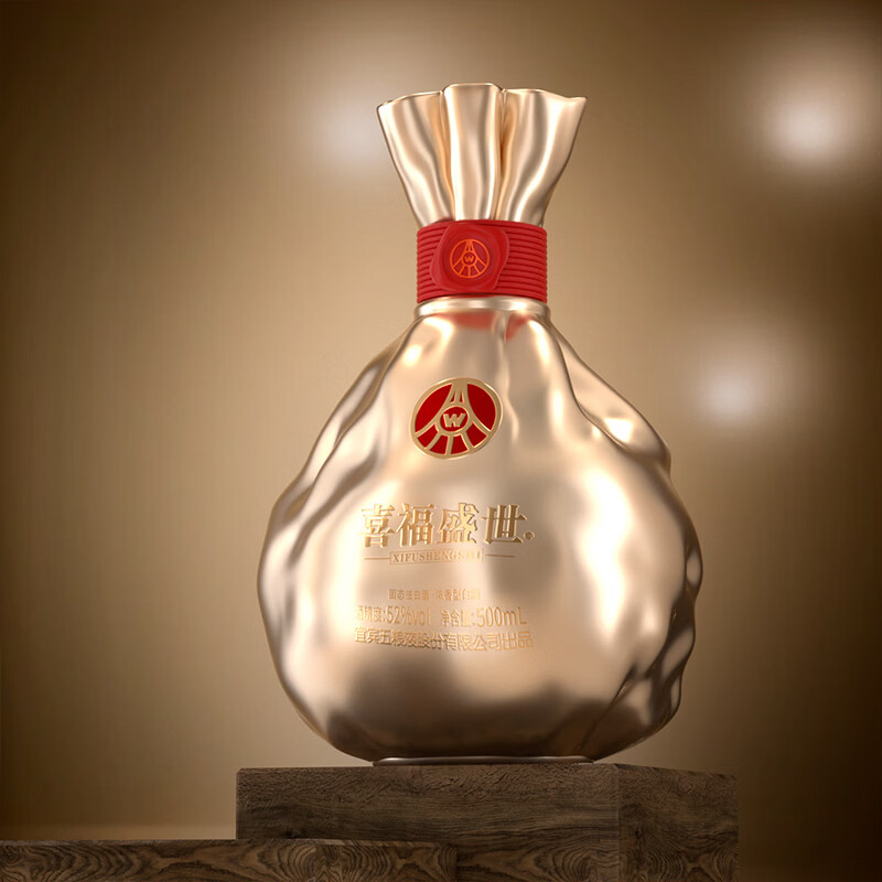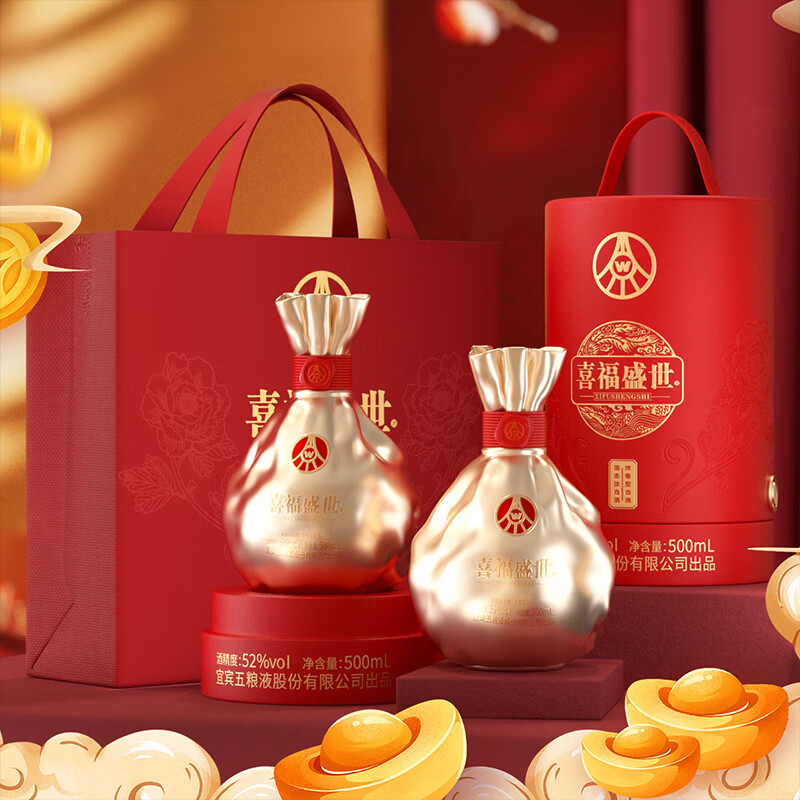 五粮液股份出品 官方授权 52度优级 浓香型 白酒 喜福盛世 52度 500mL 6瓶装金玉整箱装