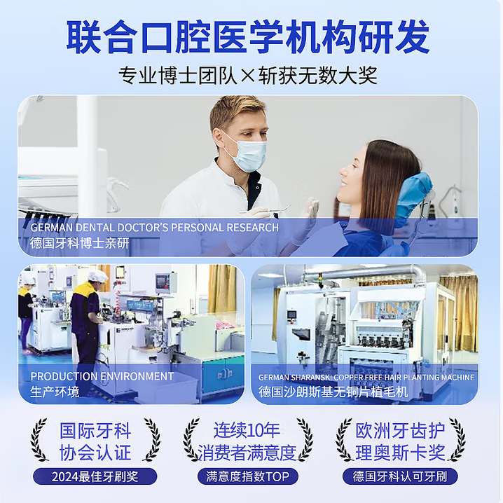 - 超软毛设计: 亲肤舒适,适用于所有敏感人群,长期使用不伤牙龈。