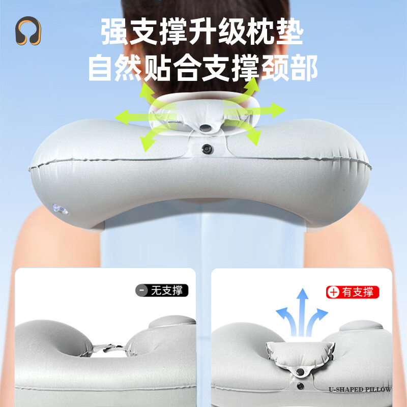 四万公里按压充气u型枕飞机护颈u型枕旅行便携式脖枕头,专为长途出行设计的舒适好物! 充气方式简单快速,轻松享受舒适的睡眠体验。这款u型枕采用优质材质打造,确保颈部支撑稳固且柔软舒适。
