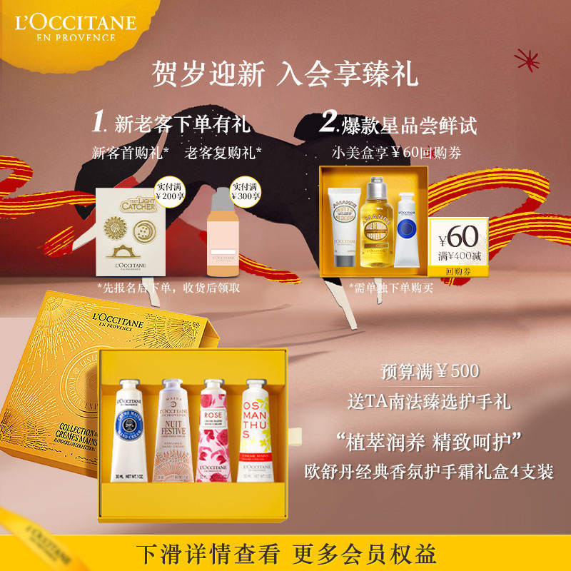 这款奢华的护理套装由欧舒丹精心打造,每一只都富含丰富的天然成分——乳木果油。其独特的滋润效果能够深入滋养你的双手,帮助抵御干燥环境,让肌肤保持水润光滑。不仅如此,每只护手霜均含有不同的香型,让你在日常使用中感受到不一样的惊喜。