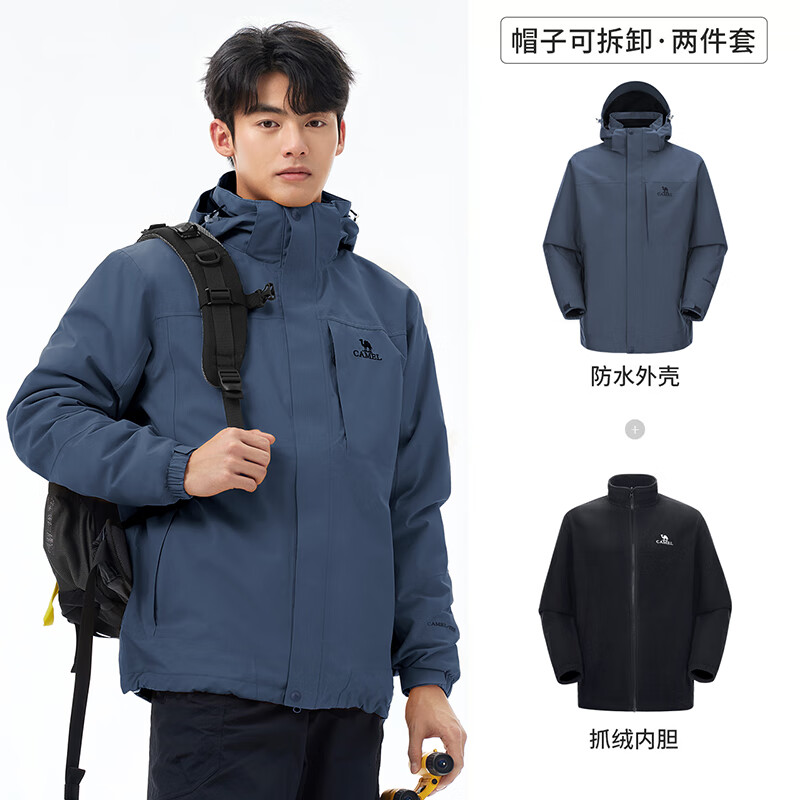 骆驼(CAMEL)户外冲锋衣 三合一加绒加厚防水情侣款外套登山服装 A9W214119AX是一款专为追求高品质生活的你设计的户外装备。这件冲锋衣不仅在保暖和防风方面表现出色,其灵活的设计还能根据你的需求随时变换组合模式,让你无论是日常穿着还是进行长途徒步都能享受到舒适体验。