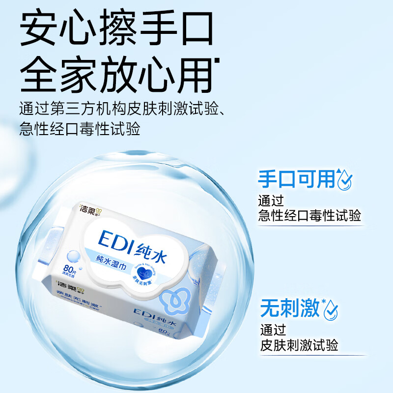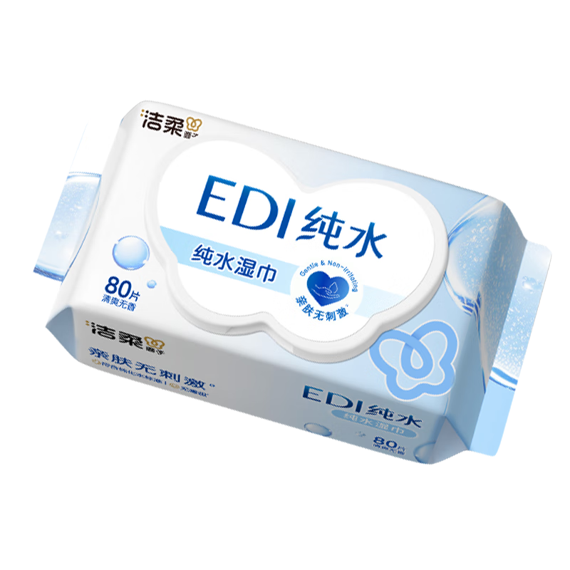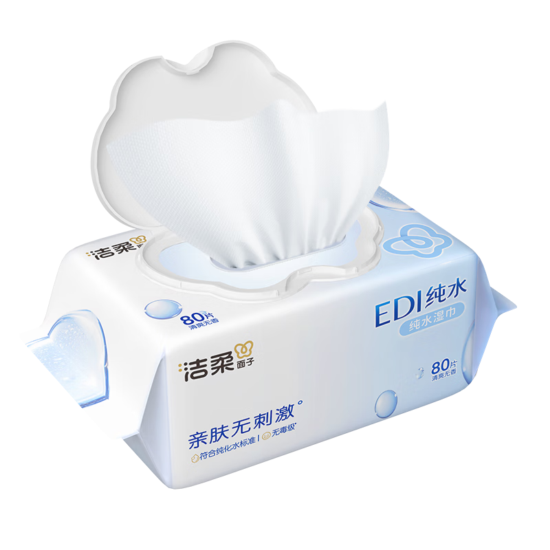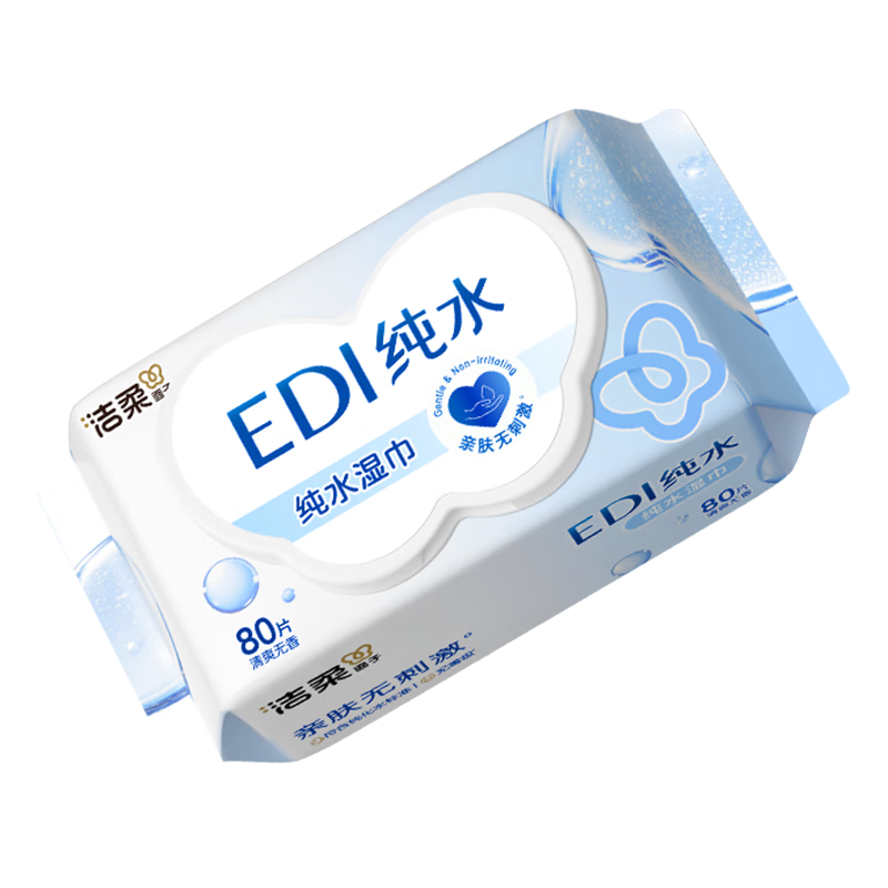洁柔湿巾爽肤80抽*1包EDI纯水湿纸温和不含酒精手口可用无刺激是一款深受消费者喜爱的个人护理用品。这款产品的主要优点包括: