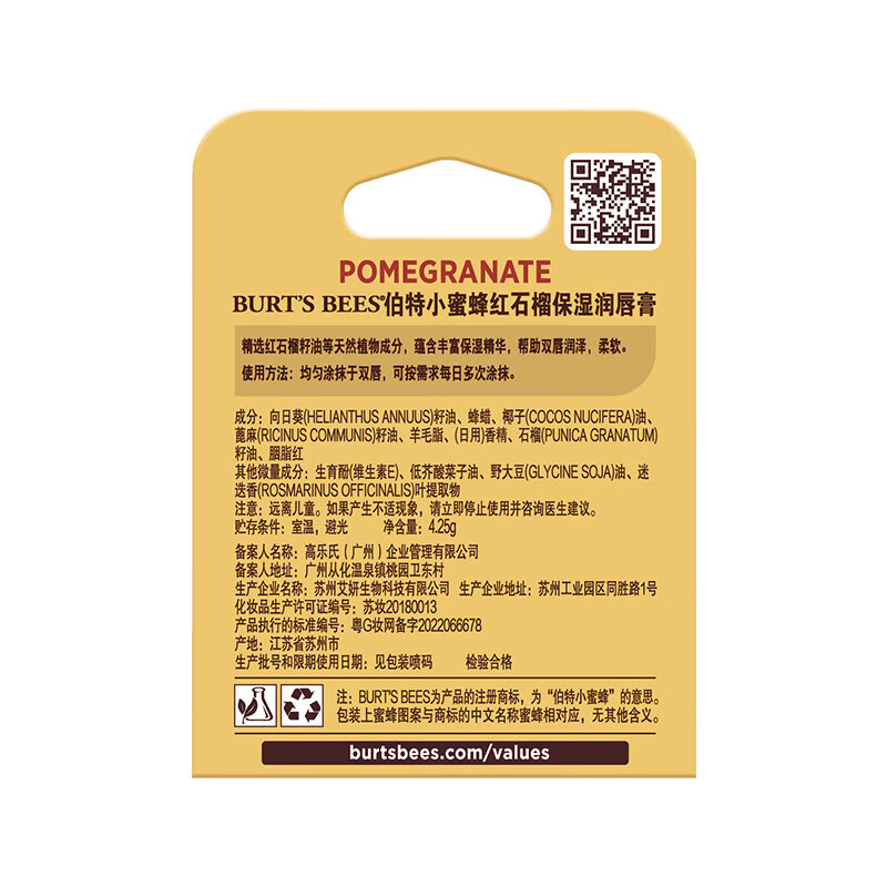 **伯特小蜜蜂(Burt’s Bees)无色润唇膏天然保湿秋冬补水生日新年礼物,葡萄柚+红石榴口味各一支,滋润度超高!
