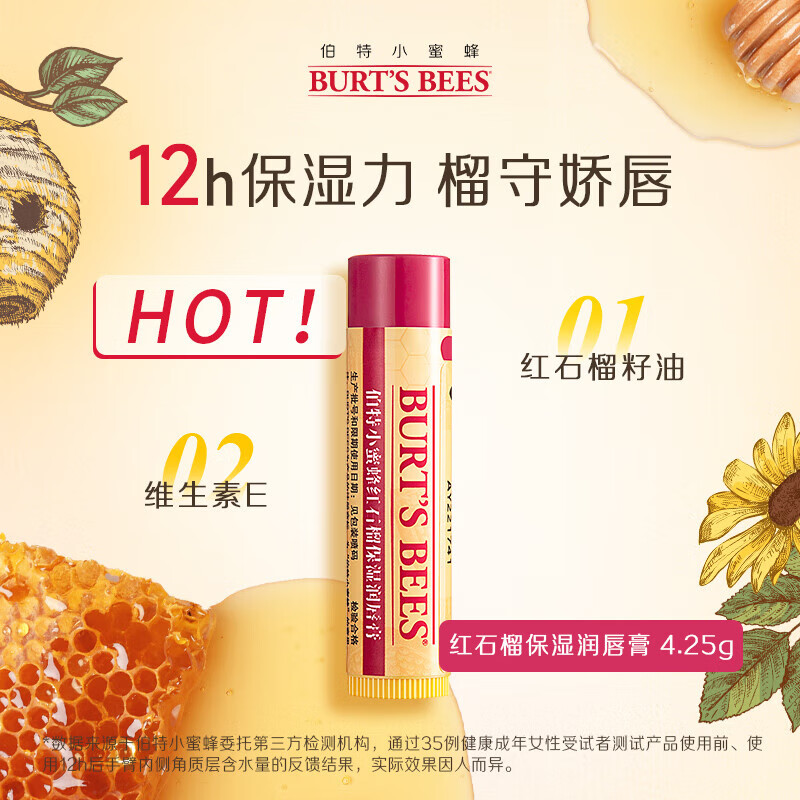 伯特小蜜蜂无色润唇膏天然保湿秋冬补水生日新年礼物 葡萄柚+红石榴4.25g*2 仅售55.8元