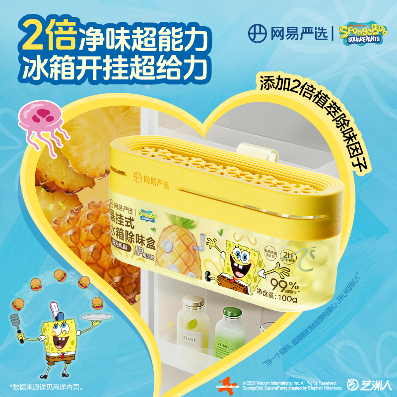 网易严选【海绵宝宝联名】悬挂冰箱除臭剂 保鲜抑菌小能手,价格惊喜低至13.9元!