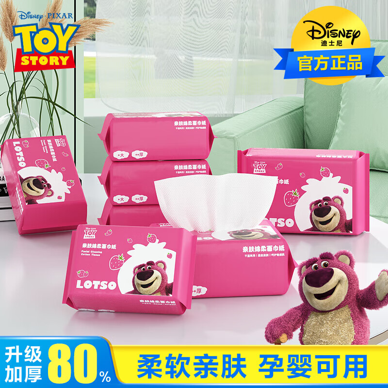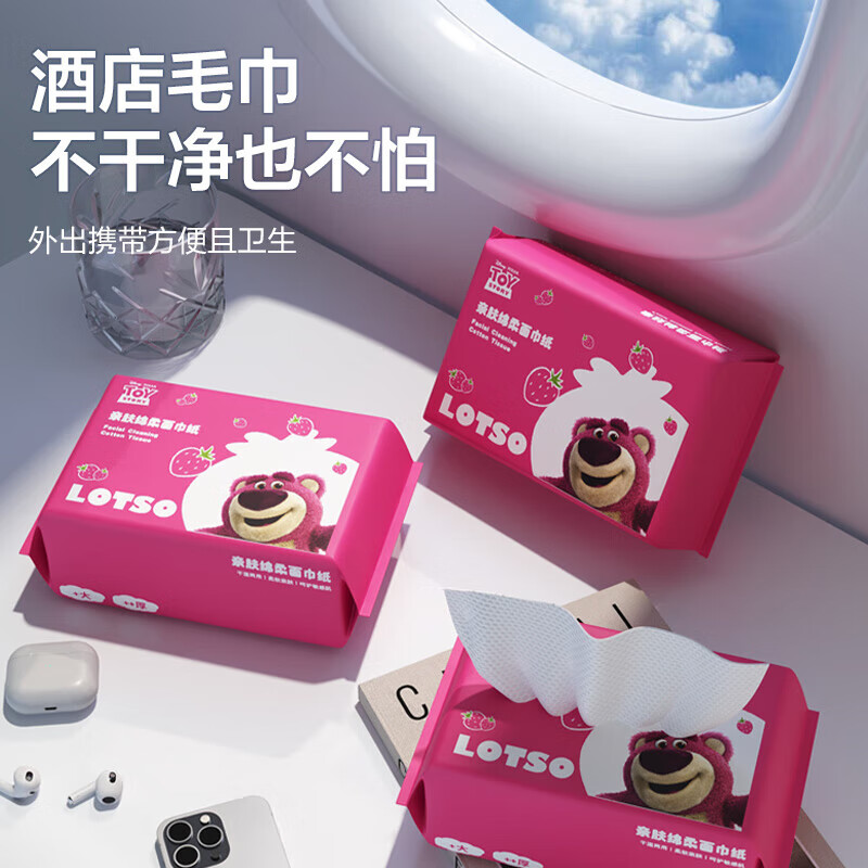 迪士尼草莓熊一次性洗脸巾抽取式洁面擦脸卸妆巾洗面绵柔巾加大yw厚款 1卷,现仅售1.9元!