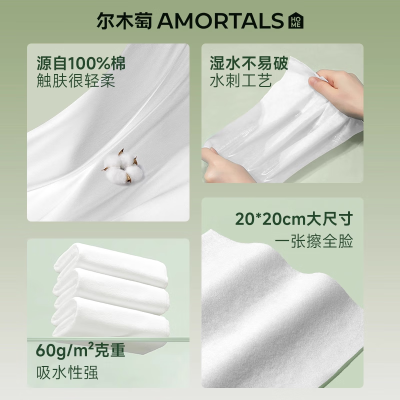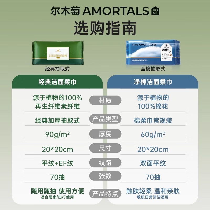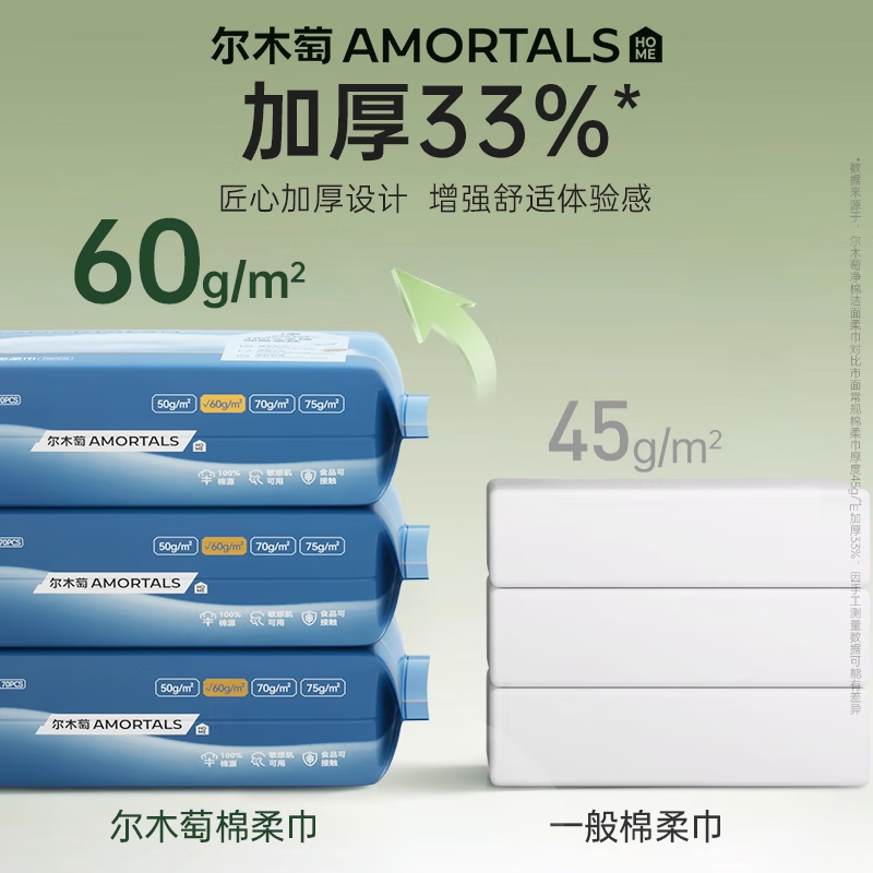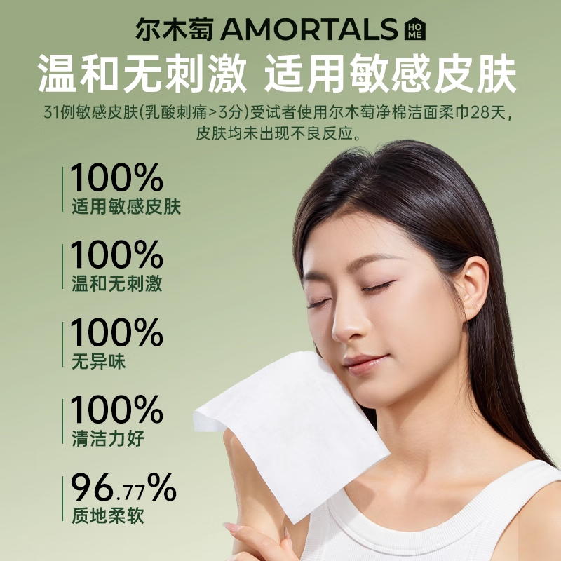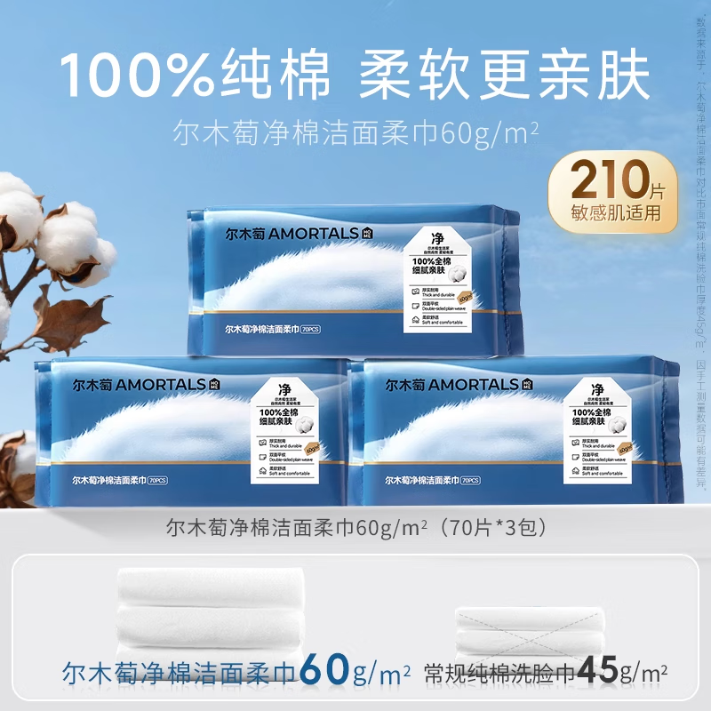 尔木萄(AMORTALS)全棉洗脸巾70抽*3包-纯天然棉柔护理
