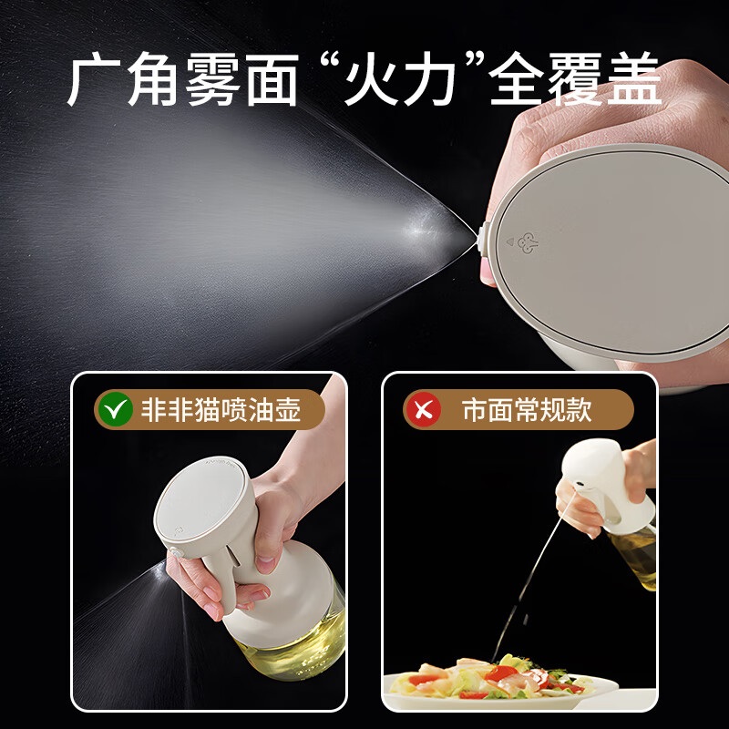 此款喷油瓶适合各种场景使用,无论是家庭空气炸锅还是煎炒烹炸等其他烹饪方式,都能得心应手,为您的厨房生活带来更多的便利与乐趣。同时具有雾化效果好的特点,有助于均匀撒油和避免浪费。