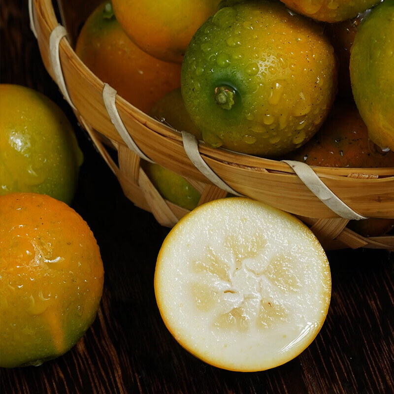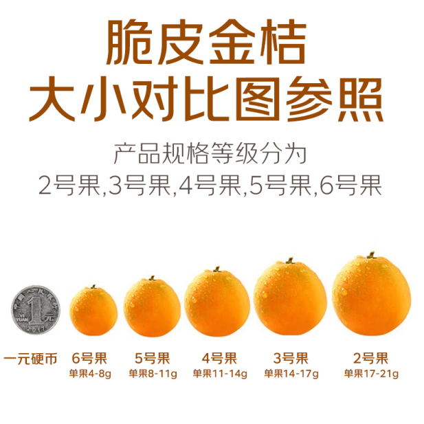 每一份金桔净重1.8斤(约6号果),肉质细嫩、汁水丰富、口感醇厚且不带酸涩味。不仅可以直接食用满足口腹之欲,还适合用作礼品馈赠给亲朋好友。