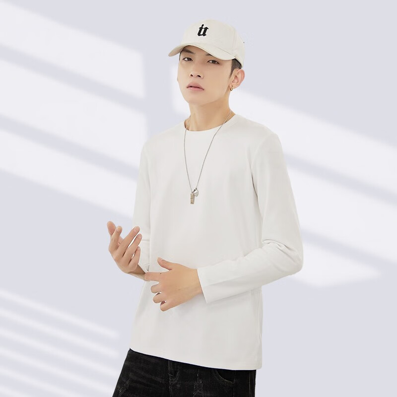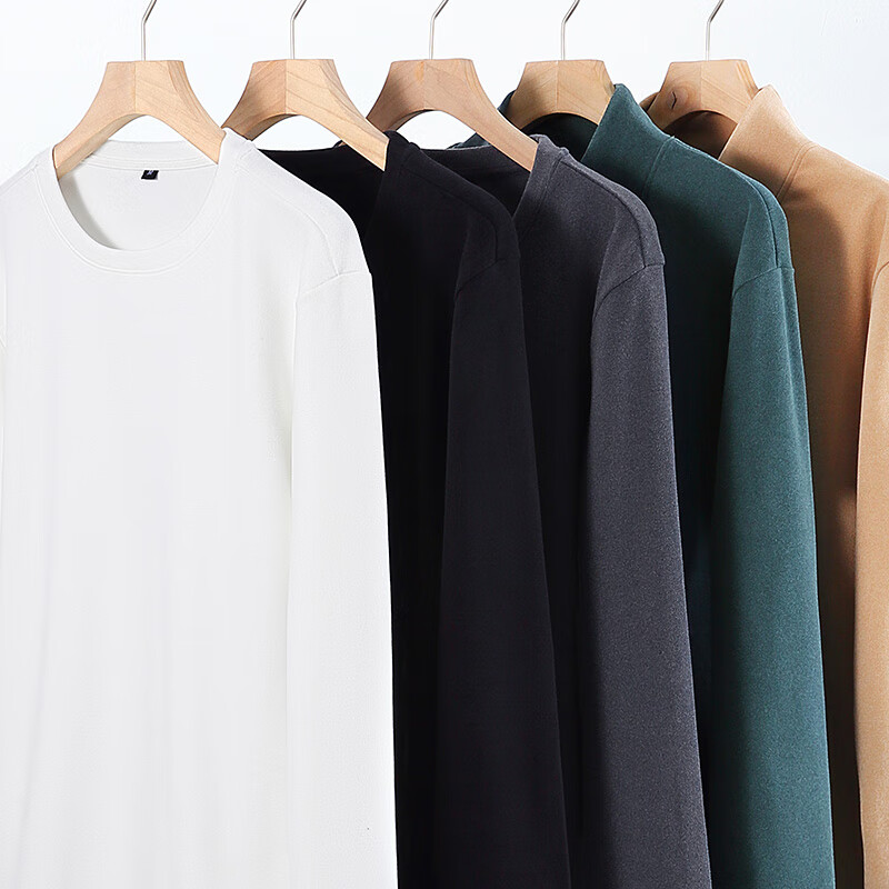 真维斯(Jeanswest)T恤长袖2025秋冬上衣内搭保暖秋衣加厚打底衫男长袖体恤内搭衣服 黑色【纯色】 XL