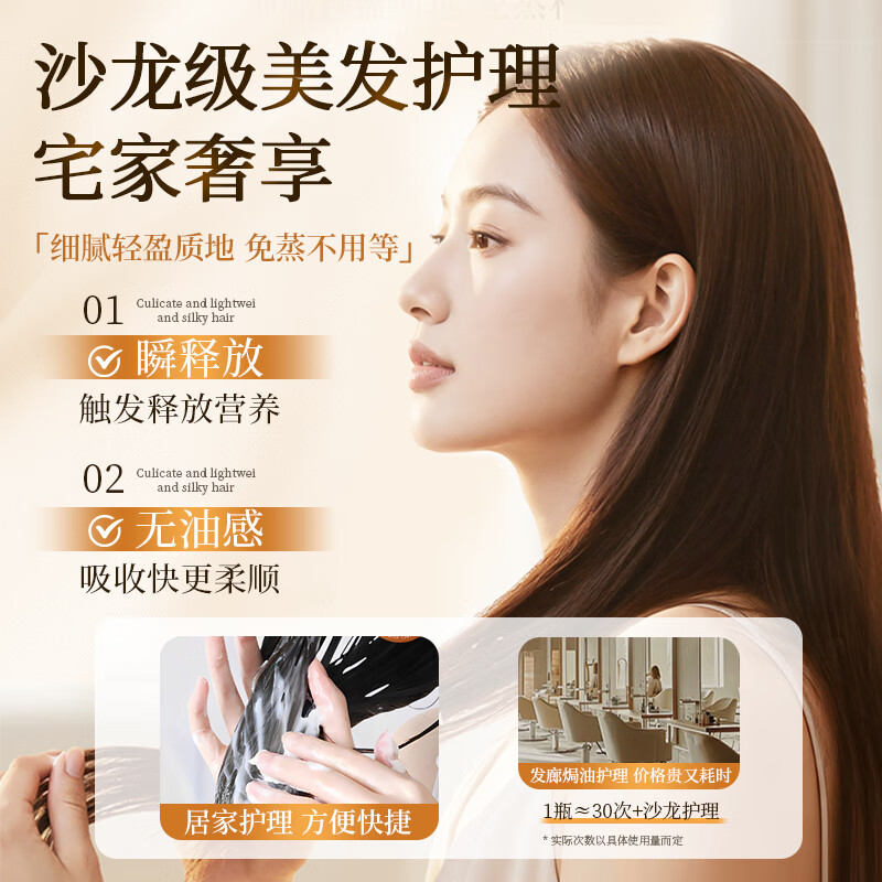 • 轻便使用:无需加热或蒸气处理即可享受高效护发功效,适合所有肤质及头发类型的日常保养需求。
