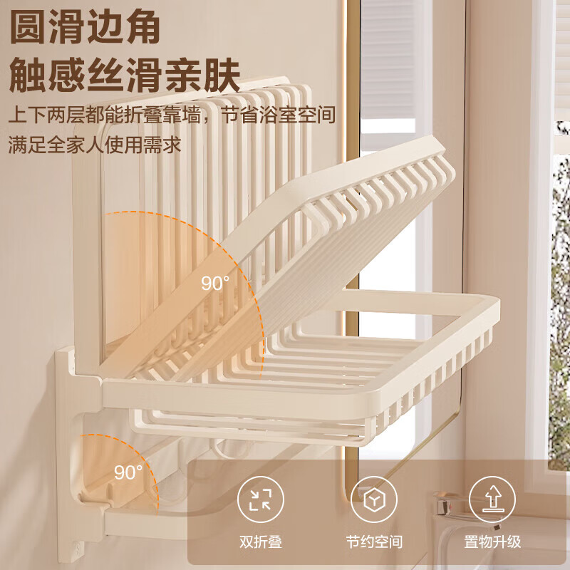 这款卫生间置物架能够帮助您高效利用浴室空间,方便挂放毛巾、浴巾等用品。它具有多种颜色可选,并且支持折叠收纳功能,在不需要时可以轻松收起。