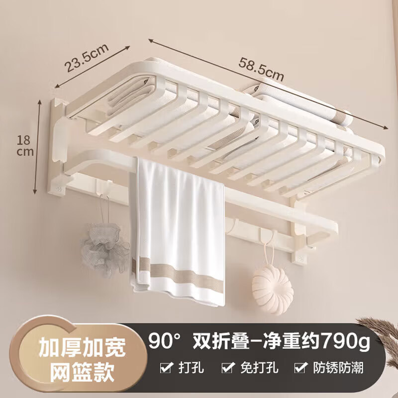 四季沐歌(MICOE)卫生间置物架毛巾架免打孔浴室挂件加宽折叠浴巾架网篮架 – 仅售94.9元