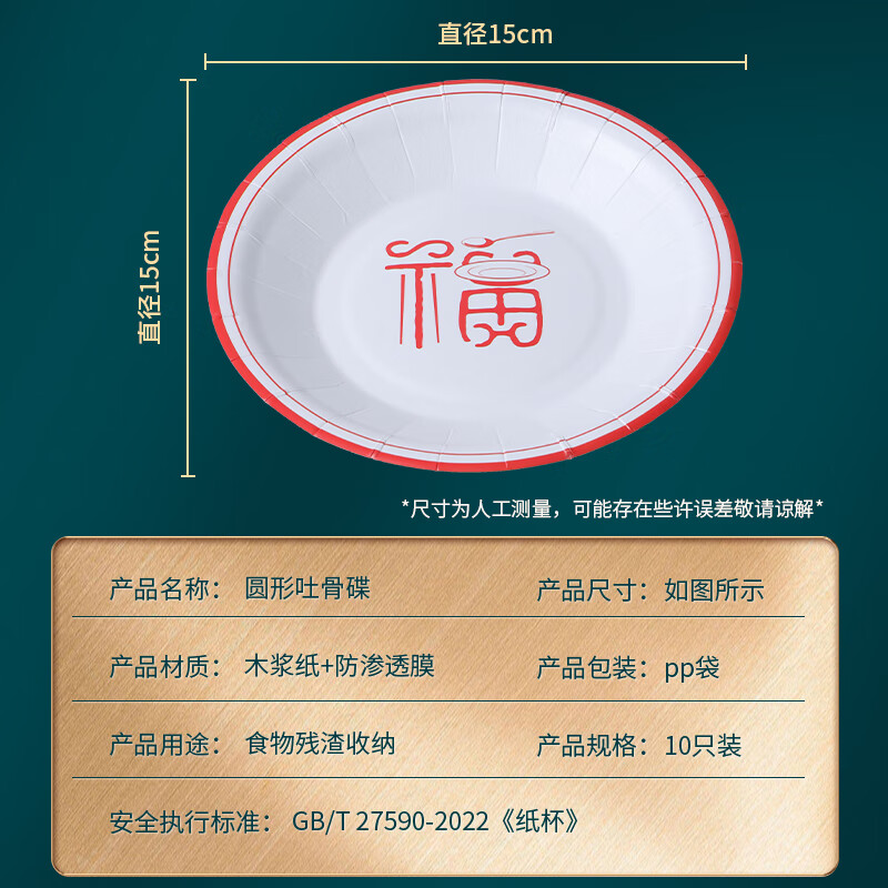 拜杰一次性盘碟吐骨碟家用食品级吐骨头小盘子餐桌垃圾渣盘10只装,现在特惠价只要 5.9 元!