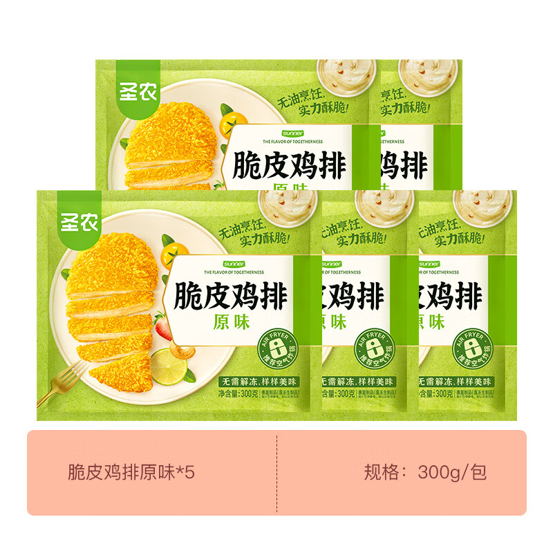 圣农脆皮鸡排 鸡胸肉 健身裹粉鸡排代餐 轻食高蛋白 方便速食300g 脆皮鸡排5包