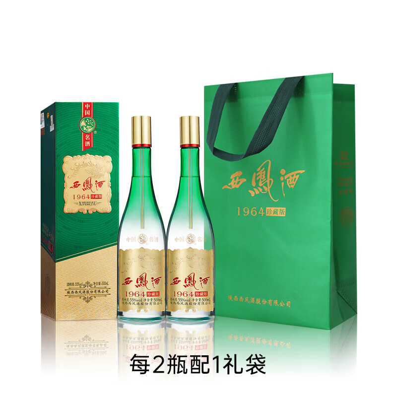 西凤酒55度 1964珍藏版纪念版 凤香型白酒 500mL 2瓶 礼袋装珍藏版
