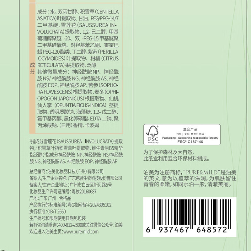 - 天然积雪草成分温和不刺激,适合各种肤质使用。