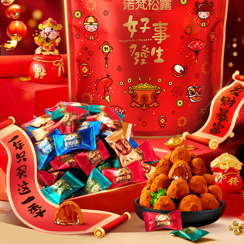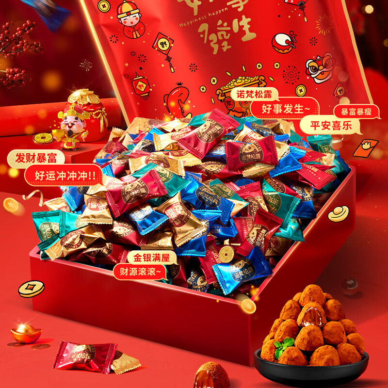 甜美的结婚喜糖,奢华的节日伴手礼 —— 诺梵松露巧克力结婚喜糖伴手礼糖果休闲零食糖果年货礼物送女友 松露巧克力500g大礼包!