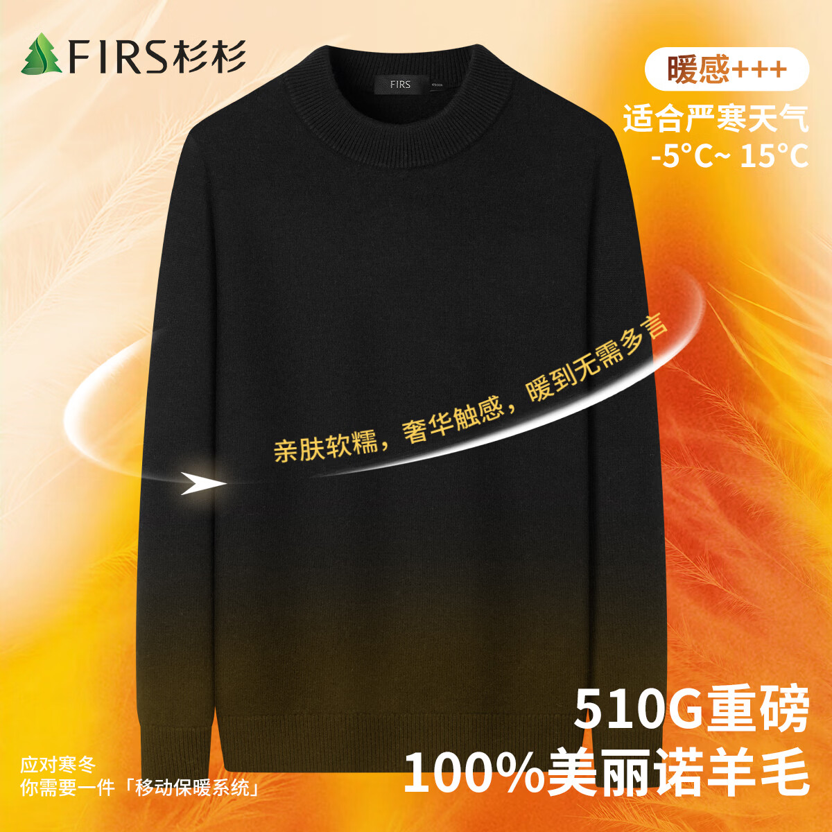 杉杉【抗起球重磅510G】100%纯羊毛衫毛衣亲肤保暖针织打底衫男士,现优惠价仅需 ¥254。原价 ¥299,现在入手最划算!