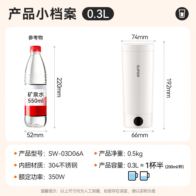 作为一款畅销产品的电热水杯,苏泊尔(SUPOR)SW-03D06A是您的理想选择。立即前往下单享受优惠价格和便捷体验吧!