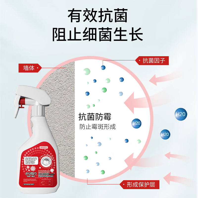 • 高效清洁:强力去除墙面、墙壁上的霉斑及霉菌,保证家居卫生。