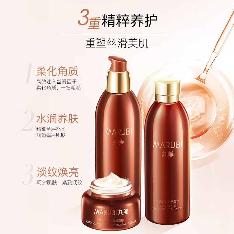 这款由丸美出品的巧克力丝滑水乳霜套盒,集保湿、抗皱及紧肤三大功效于一体。特别适合冬季或者需要额外护肤需求的人群使用。