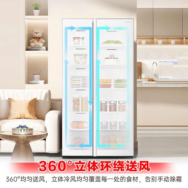 这款容声对开门冰箱不仅拥有超薄时尚的设计外观,还具备大容量和一级能效的卓越性能。采用风冷无霜技术,省去了频繁除霜的麻烦;双变频系统则确保了节能效果的同时保持食材新鲜。