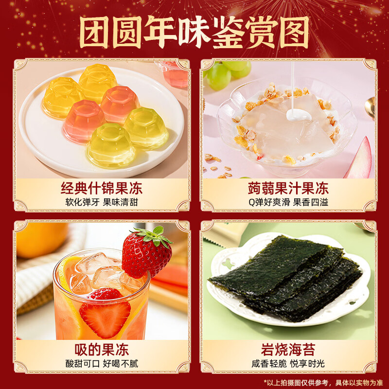 春节将至,喜之郎的这款年货礼盒成为你的不二之选。它集合了众多经典口味果冻和美味脆爽海苔,在满足您味蕾享受的同时更符合节日氛围。