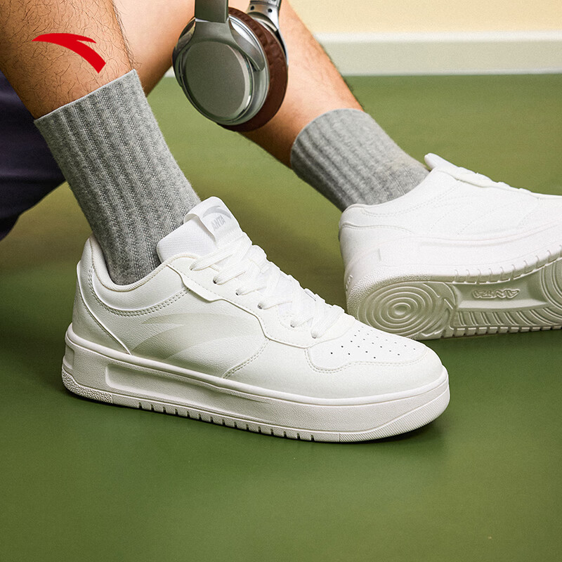 安踏轻松丨板鞋男鞋,厚底设计不仅舒适还带有增高效果。百搭休闲小白鞋适合校园及日常穿着!