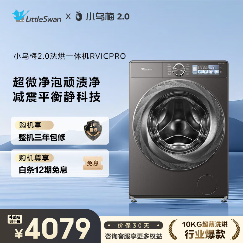 智能高效生活帮手 —— 小天鹅(LittleSwan)小乌梅2.0 TD100RVICPRO滚筒洗烘一体机!