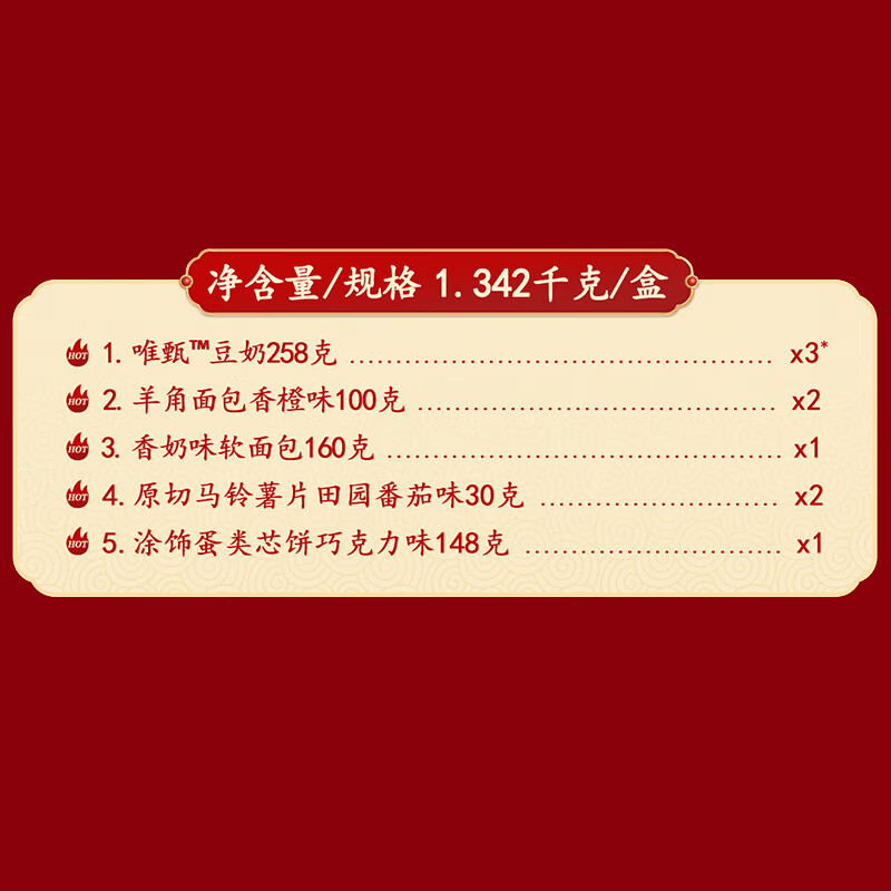 此款1342g的大份量礼盒包括了多种美味的面包与零食组合,既包含了早餐必备的小面包,也有休闲时间享受的精美糕点。为家人准备一份这样的新年礼物,定能让全家人赞不绝口。
