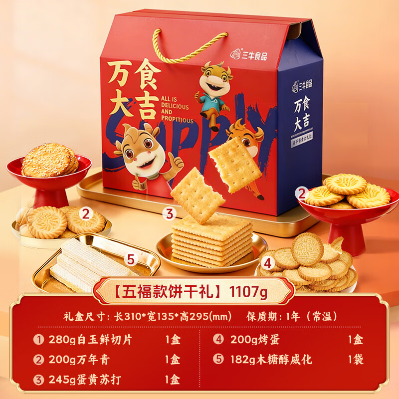 三牛万食大吉送礼饼干礼盒 年货节特惠仅97.8元buy2026年1月29日京东优选 三牛万食大吉送礼饼干礼盒 年货节特惠仅97.8元 春节将至,为亲朋好友挑选一份心意满满的礼物至关重要。这款三牛万食大吉送礼饼干礼盒是您最佳的选择。它内含丰富多样的1107g饼干,每一块都是精选原料制成,口感酥脆香甜,不仅适合作为自家享用的小零食,也是馈赠亲友的佳选。 好评如潮: 超过5万的好评告诉我们这是一款值得信赖的产品。无论是自己吃还是送礼都十分合适! 现特惠促销价仅需97.8元,相比原价优惠很多,赶紧抓住机会吧!数量有限,先到先得哦。 产品详情 Share this content: 标签# 好物推荐# 热销产品# 食品酒水 buy 文章: 47281 上一页 文章 Protect Your Privacy with Matte Ceramic Screen Protectors for Samsung Devices - Only $3.41! 下一页 文章 滴露消毒液1.2L*2瓶,仅售129.8元
